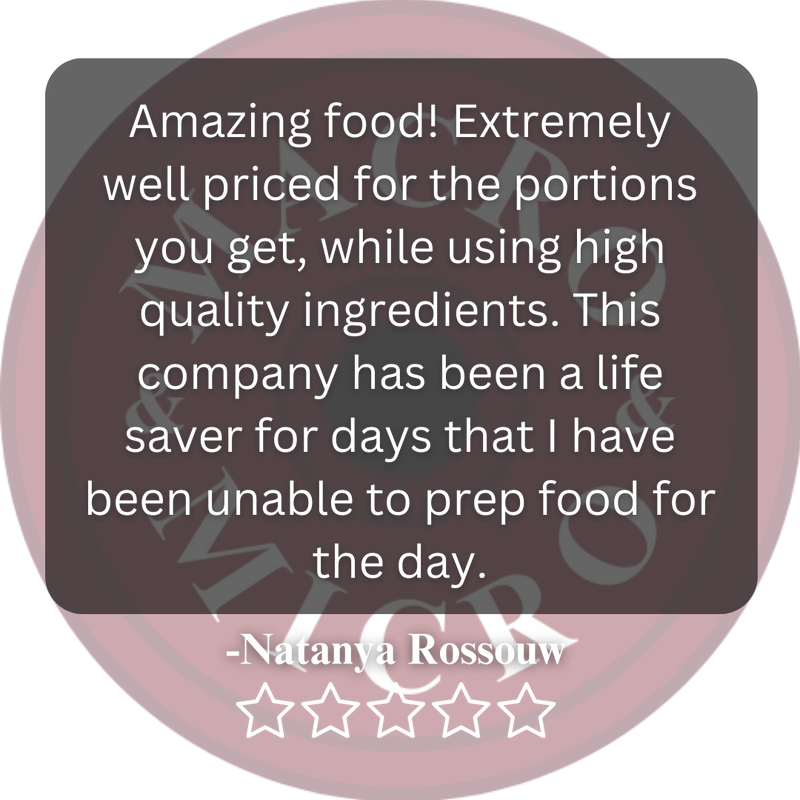 Fresh food is such an important factor in nutrition. That's why we make meals upon your order with fresh food that is vacuum sealed to reduce oxidation and retain water in our meals.