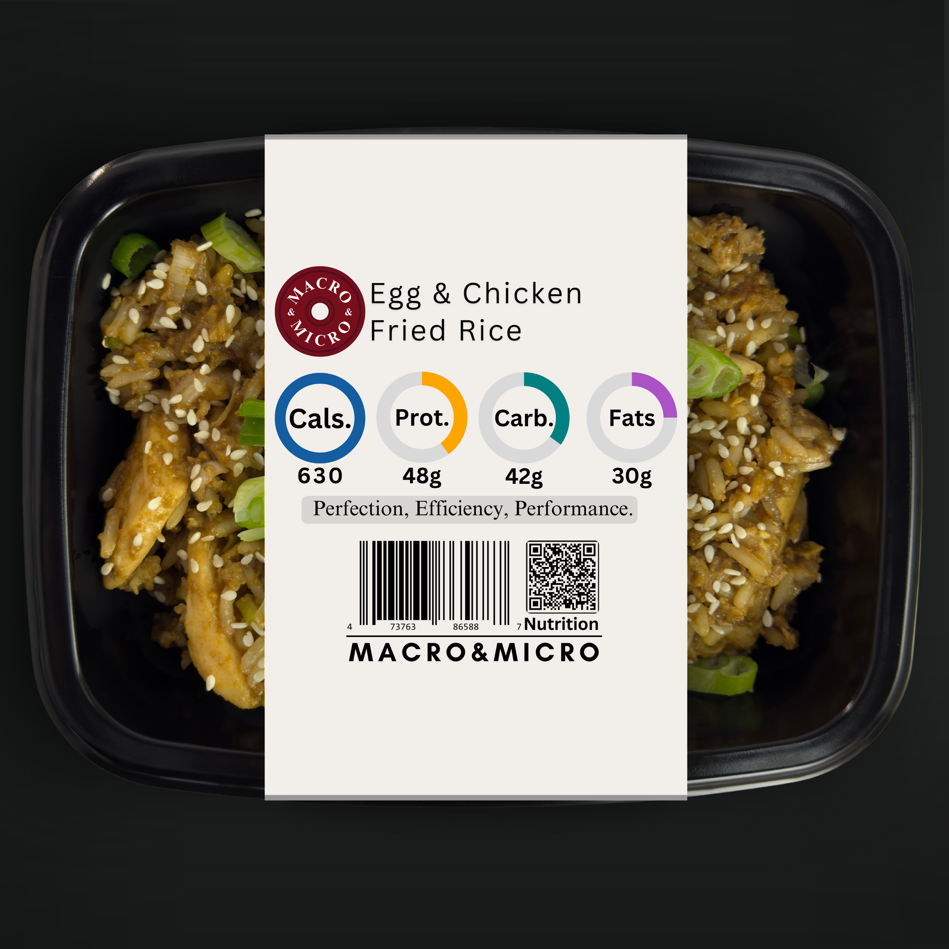 Egg & Chicken Fried Rice Mini balanced to fuel performance & recovery. This high-protein, nutrient-dense meal combines complete proteins from chicken & eggs, clean carbs from jasmine rice, and digestion-supporting fiber for steady energy & satiety.